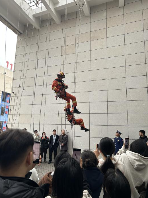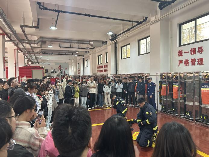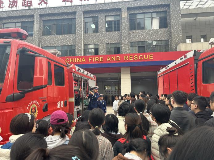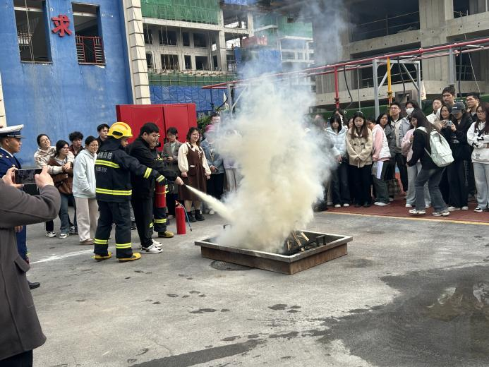 11月14日,保卫处联合基础学院组织100余名师生前往西安市消防救援支队特勤二站开展了消防体验和实地教学活动,通过抢险救援装备展示、观看火灾案例警示、一对一救援科目演示、绳结教学、灭火器实操灭火等内容,近距离感受“火焰蓝”的魅力与担当,掌握扑救初起火灾和应急逃生技能,引导师生的消防安全意识入脑入心。