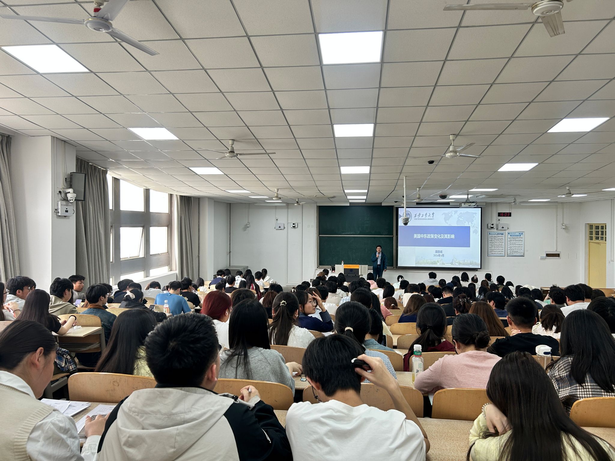 周意岷副教授结合当前复杂多变的国家安全形势,围绕“美国中东政策变化及其影响”主题,以通俗易懂的语言、真实鲜活的案例,深入阐述了危害国家安全的行为类型及其严重后果,并提醒在场师生务必提高警惕,时刻绷紧国家安全这根弦,自觉抵制危害国家安全的言论与行为,主动投身维护国家安全的实践。